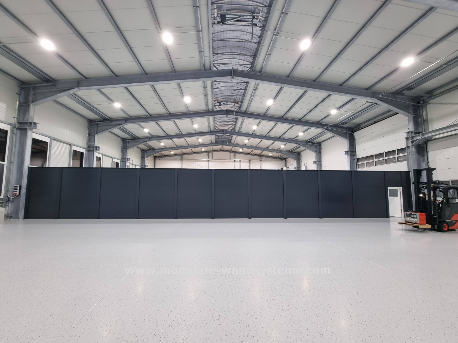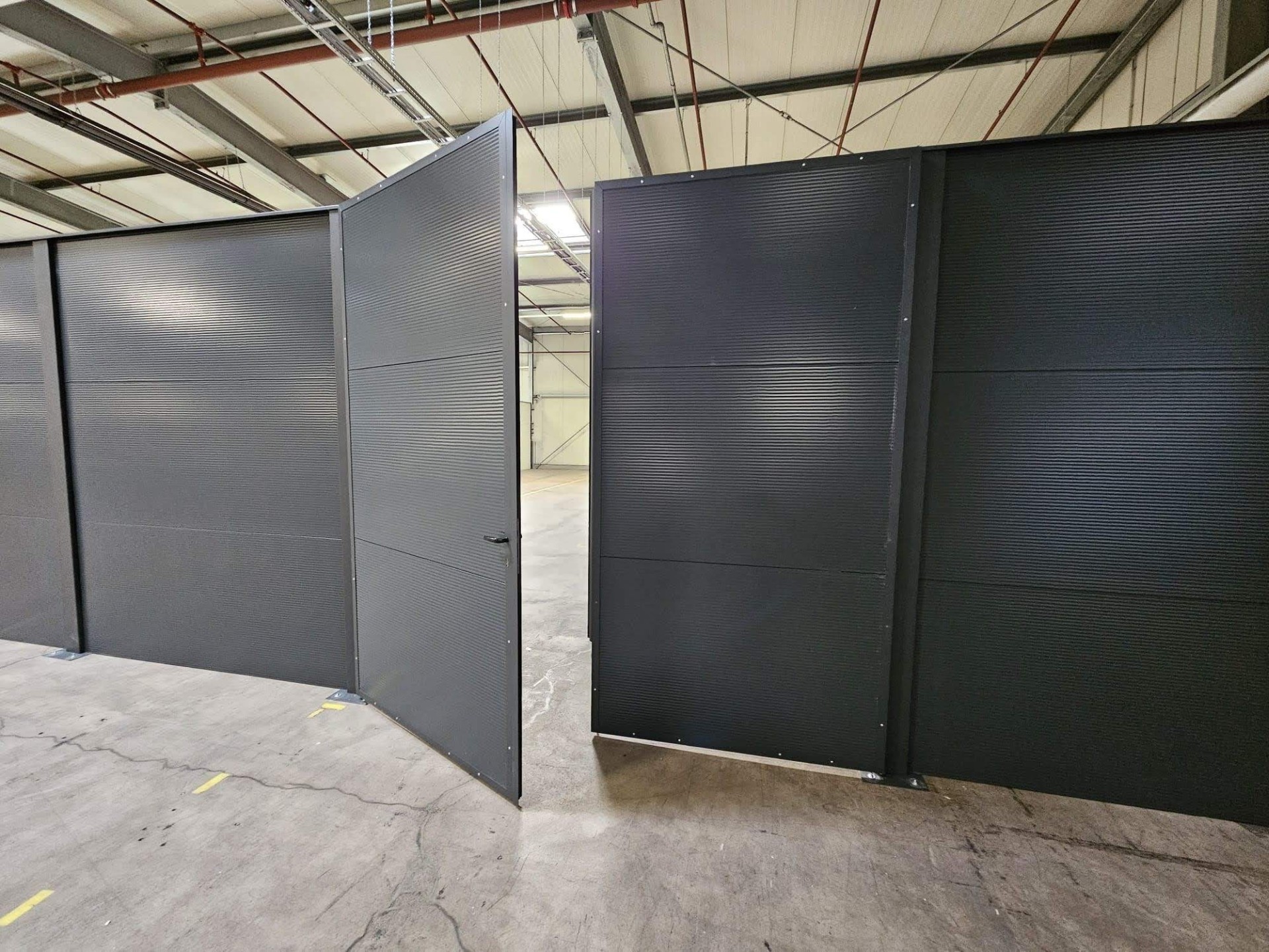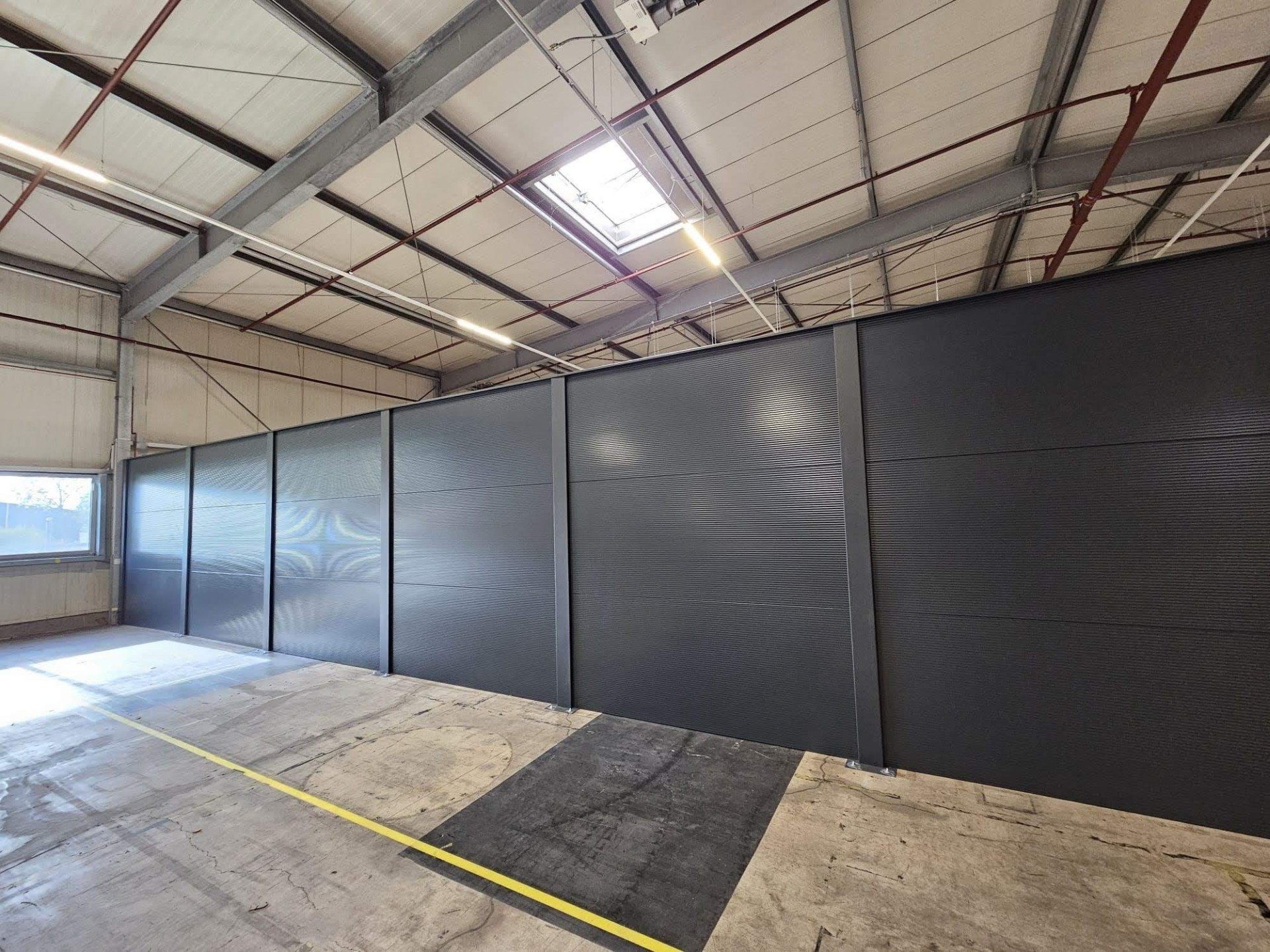 Das Modulare Wandsystem ist ebenfalls ein perfekter Sichtschutz als Hallen-Abtrennung in der Industrie.