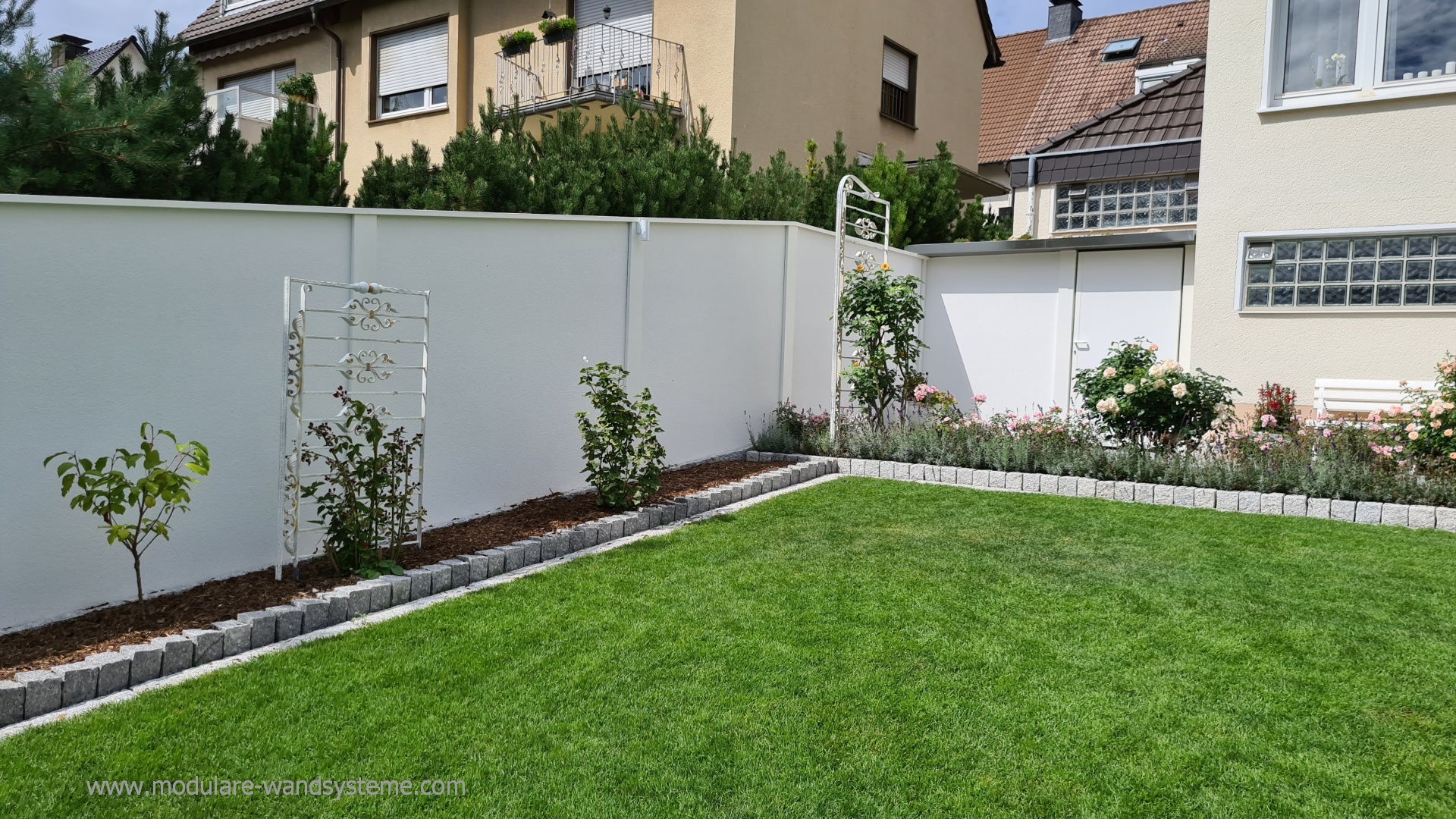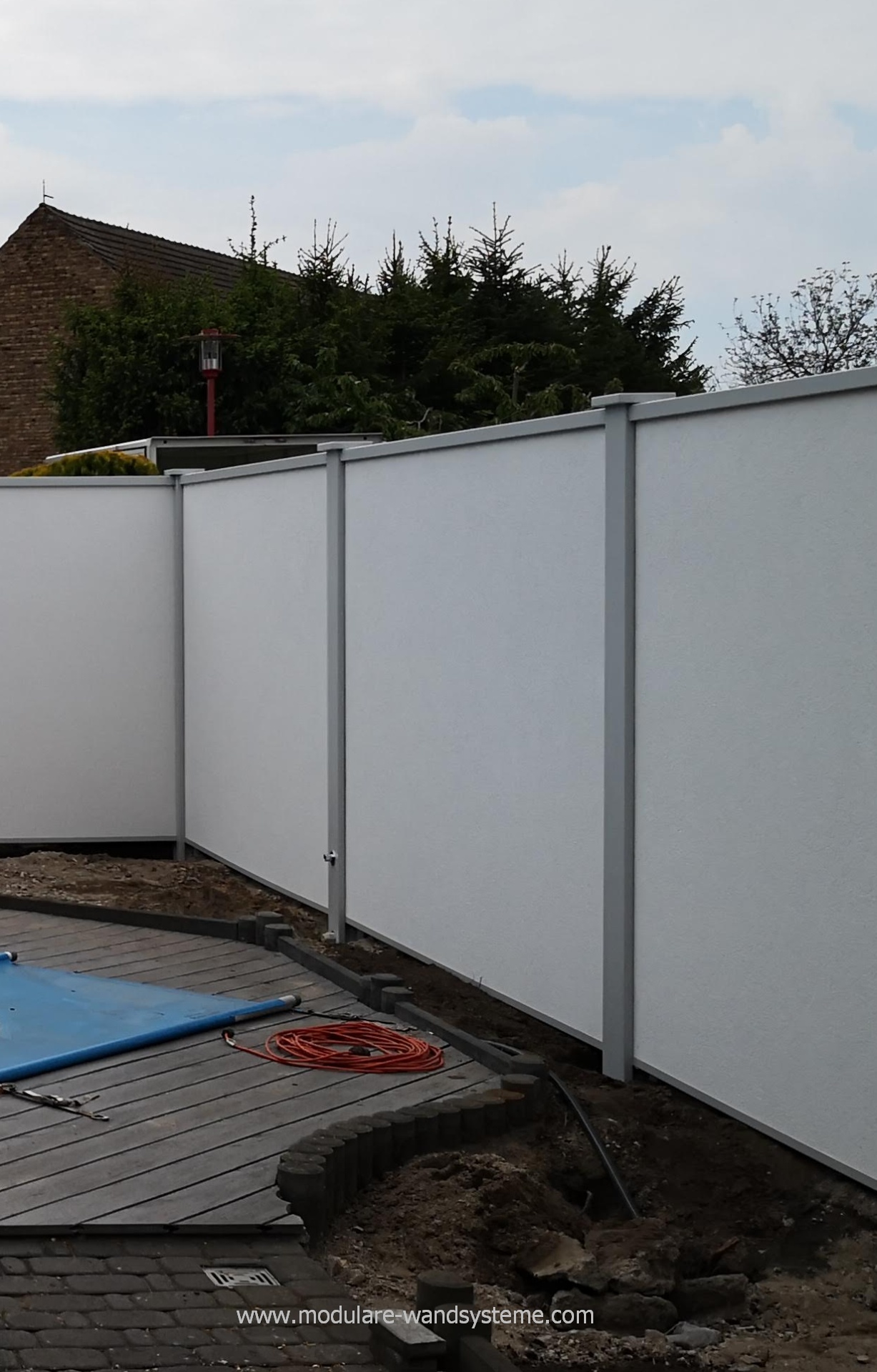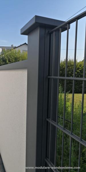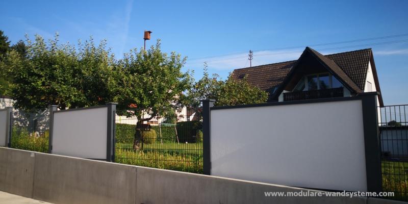 Auch Akzente durch einen Flugbohlen, Glas-, Holz, oder Aluelementen, zum Einbau in Ihre Umzäunung, sind nach Ihren individuellen Vorstellungen möglich. Weiter Ideen, mit dem Modularen Wandsystem zu bauen, sind Rankhilfen mit Stahlseilen, Mülltonneneinhausung, Gartenhäuser oder Holzunterstände.
