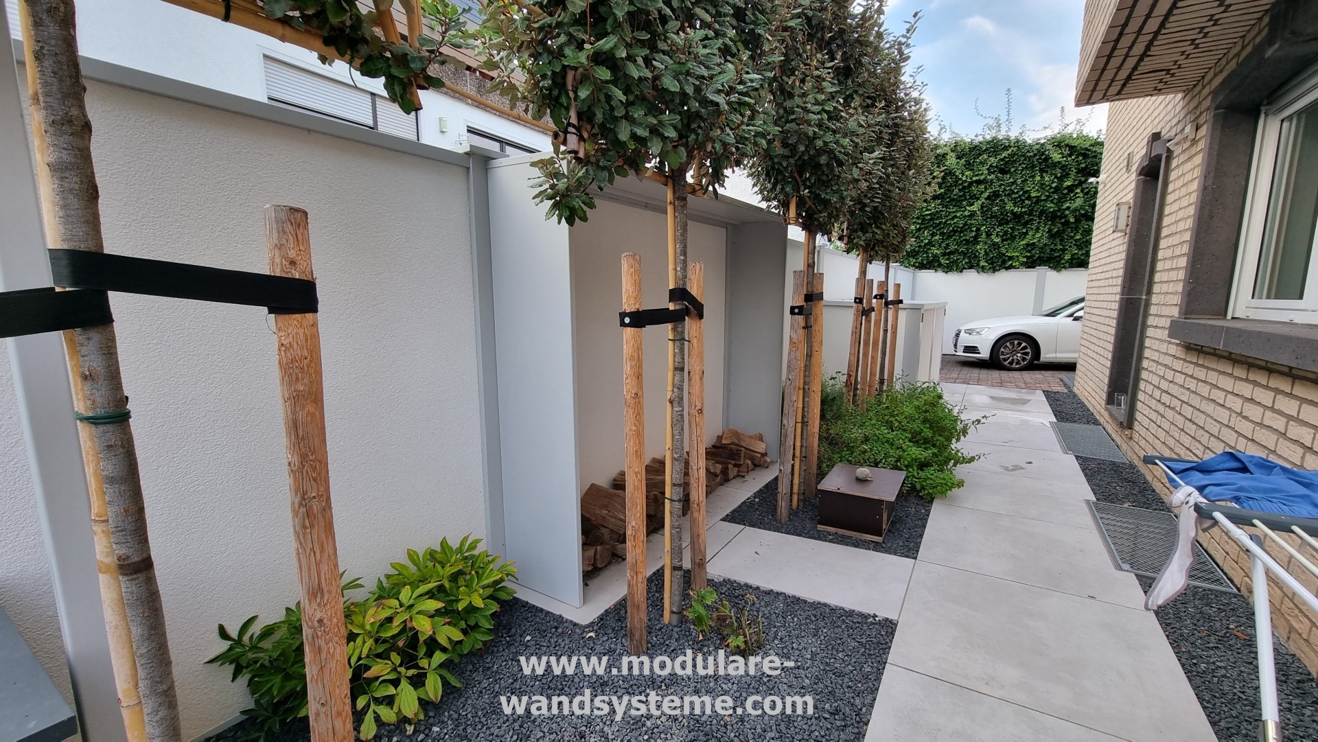Für den Einsatz als Sichtschutzzaun um eine Mülltonne oder Wärmepumpe eigenen sich unser System perfekt.