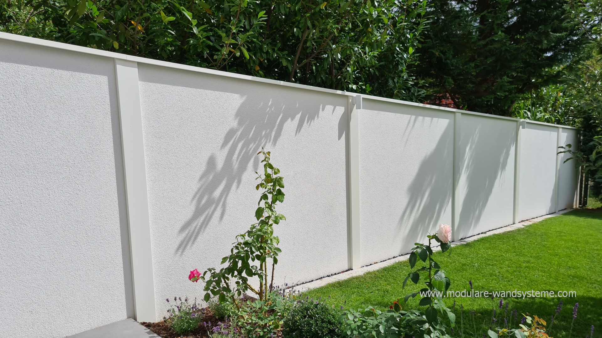 Ein individuellen und platzsparenden Sichtschutz und Lärmschutz, in der Optik einer klassisch verputzten Gartenmauer.